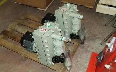 Self-priming chemical pumps (pump above the liquid level). Available in three sizes, they meet a wide range of needs: emptying underground tanks, draining sumps or general maintenance work. Installation (above the free surface of the liquid) requires special attention: for example, the delivery pipe must run downwards towards the pump, while the suction pipe must be as short as possible and have an inclination to avoid pockets of stagnation or air bubbles. In addition, their suction capacity is altered by unsupported pipes, shut-off or non-return valves, tight radius bends, pipes with a diameter smaller than that of the suction and delivery ports.