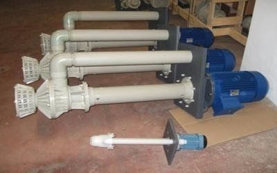 Pompes chimiques série GP. Fabriquées à partir de blocs de polypropylène solides. Pompes chimiques verticales idéales pour les travaux lourds et les opérations continues. Longueur maximale : 3000 mm. Débit max : 200 m³/h. Hauteur manométrique max : 42 m wc