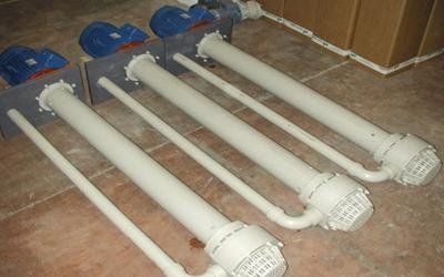Pompe centrifughe verticali realizzate in lunghezze personalizzate da 750 a 3000 mm. Le pompe chimiche GP sono contraddistinte da alte prestazioni, da corpi con pareti dagli ampi spessori e da motori per usi gravosi, caratteristiche che le rendono particolarmente adatte ad operazioni in continuo. Il loro corpo pompa a voluta, ricavato da massello, è un solido blocco di materiale plastico dall’ottima resistenza chimica e meccanica. Gli ingombri ridotti e le giranti piane sospese facilitano l’uso di queste pompe chimiche in vasche poco profonde o con ridotta capacità, come negli impianti di abbattimento fumi ad umido.